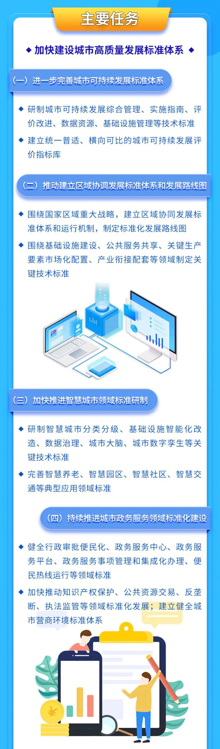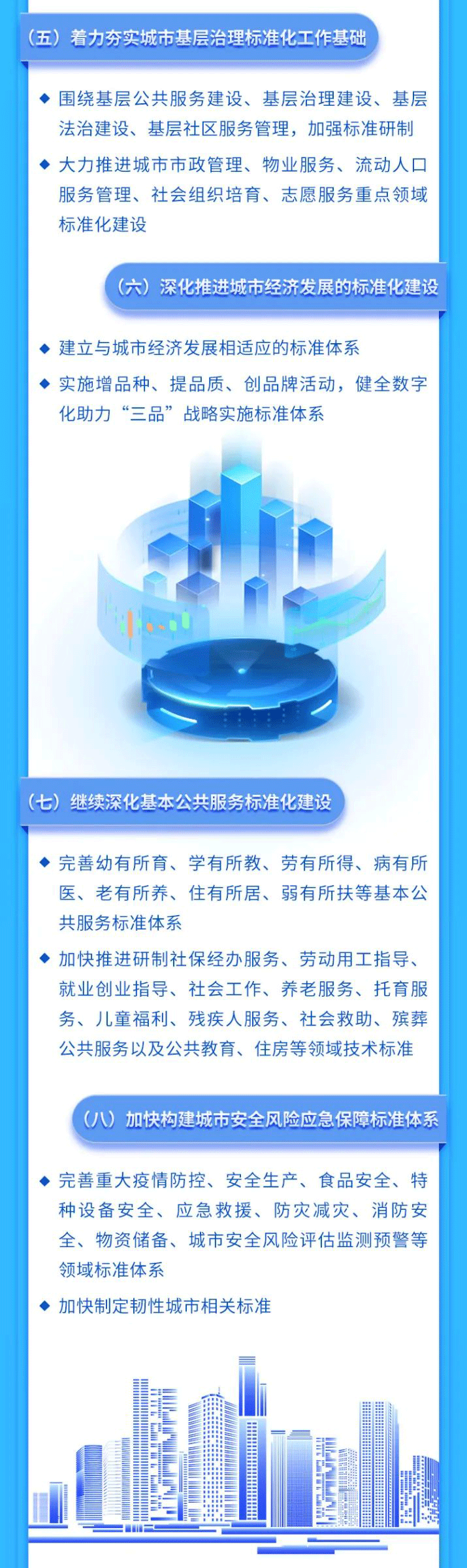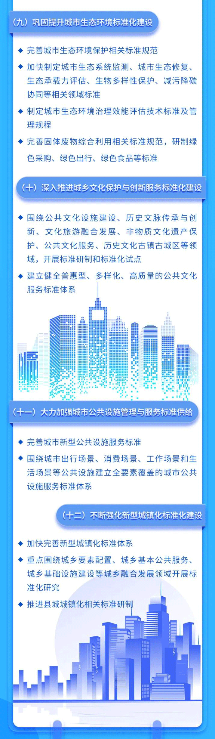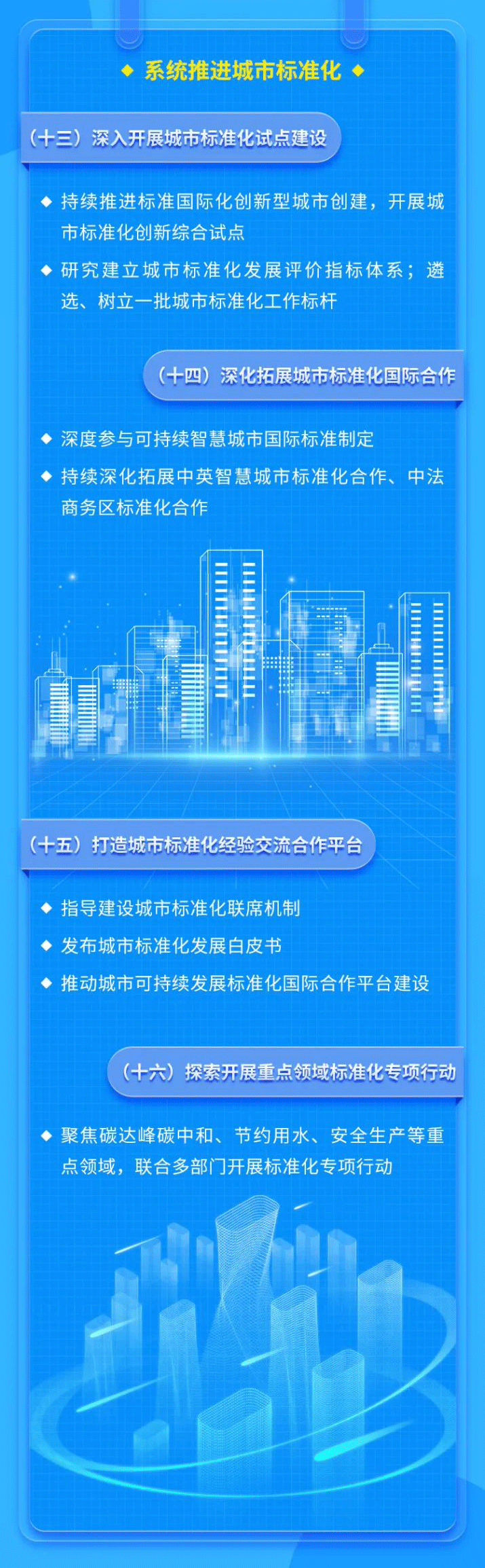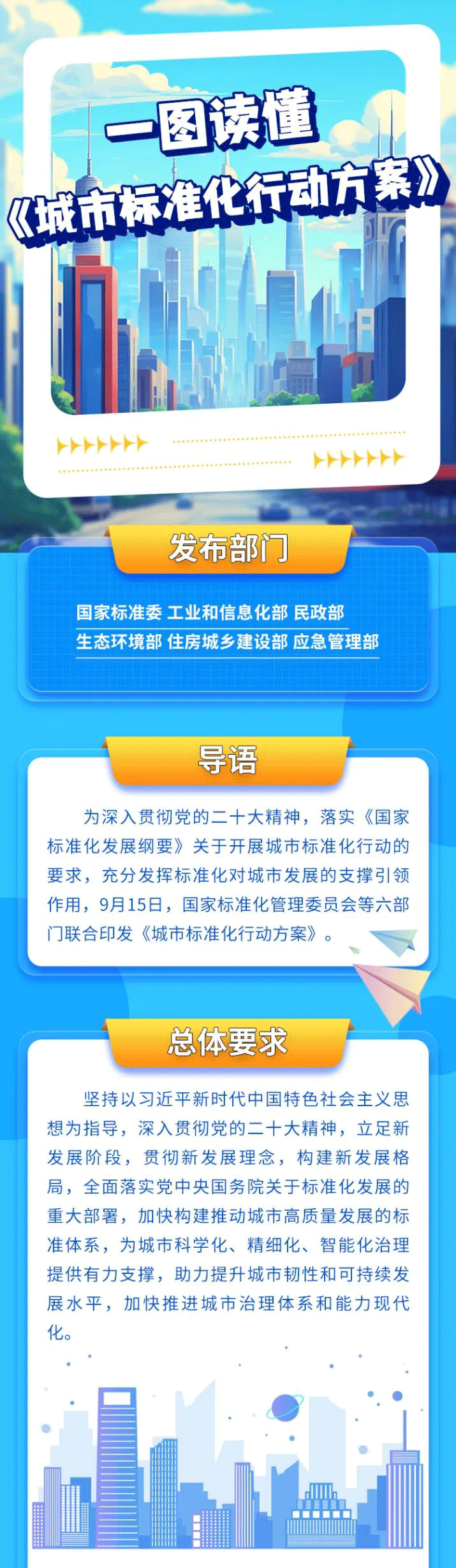 为深入贯彻党的二十大精神,落实《国家标准化发展纲要》,充分发挥标准化对城市发展的支撑引领作用,近日,国家标准化管理委员会、工业和信息化部、民政部、生态环境部、住房城乡建设部、应急管理部六部门联合印发《城市标准化行动方案》(以下简称《行动方案》)。