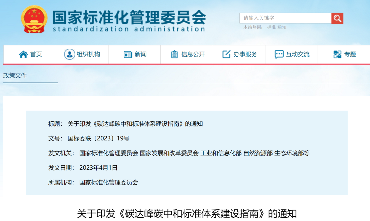 国标委联合印发《碳达峰碳中和标准体系建设指南》