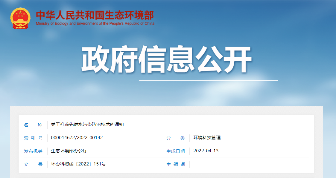 通知 | 生态环境部关于推荐先进水污染防治技术的通知